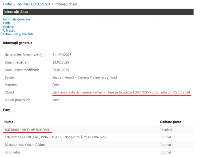 Instrumentul juridic de care se folosește, acum, afaceristul Bogdan Buzăianu este cel al plângerii împotriva soluției de clasare dată de Secția de Urmărire Penală a PICCJ în luna decembrie a anului 2024.