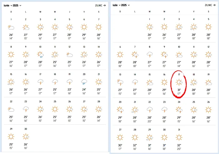 Canicula va veni în perioada de după 17 iulie, când sunt prognozate temperaturi de 31 de grade Celsius. Între 18 și 26 iulie 2025, temperaturile vor scădea la 28-29 grade. Va începe o nouă perioadă caniculară de intensitate crescută la finalul lunii iulie, când maximele vor fi de 30 – 32 de grade Celsius.