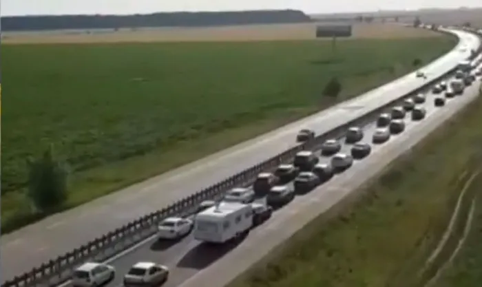 AGLOMERAȚIE. Se circulă în coloană pe Autostrada Soarelui, către litoral. Românii, pregătiți pentru minivacanța de Rusalii. captură video Antena 3