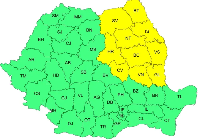 Meteorologii au emis o avertizare cod galben, până marţi la ora 10.00, pentru Moldova şi estul Transilvaniei.