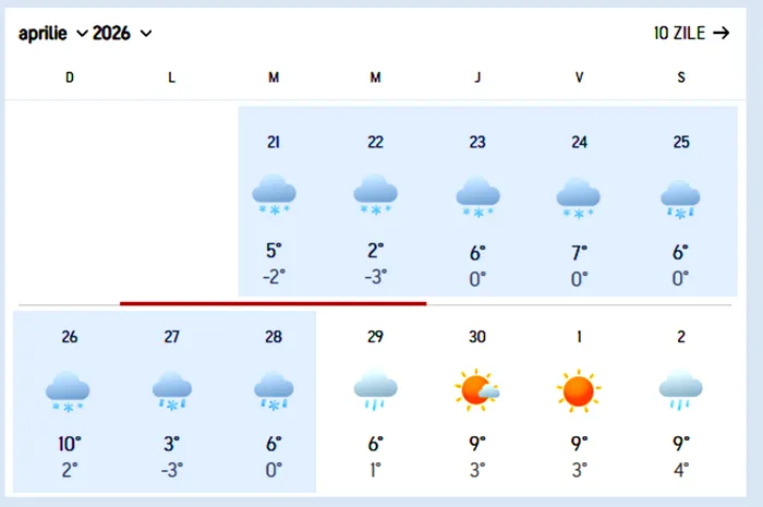 Potrivit Accuweather, localitățile afectate vor fi cele din zonele montane, începând din 21 aprilie.