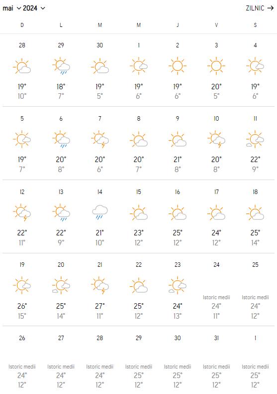 Accuweather prognozează temperaturi de până la 22 de grade în intervalul 6-12 mai 2024.