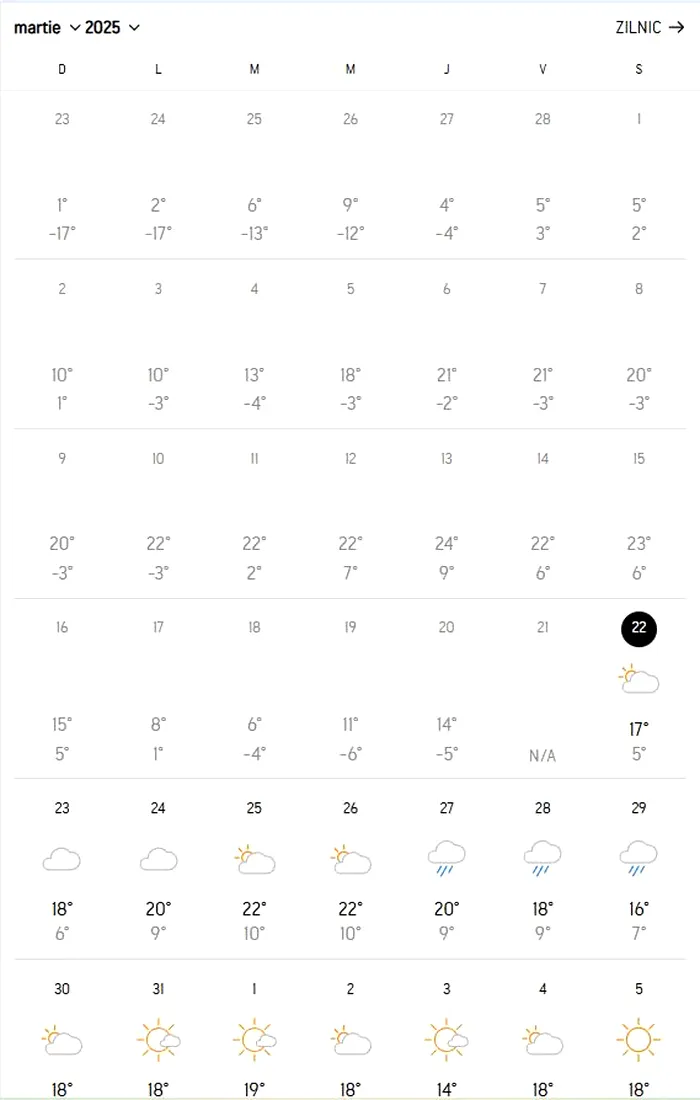 Week-end-ul 22-23 martie 2025 va fi unul însorit în Capitală, cu temperaturi de 17, respectiv 18 grade Celsius, anunță meteorologii Accuweather.