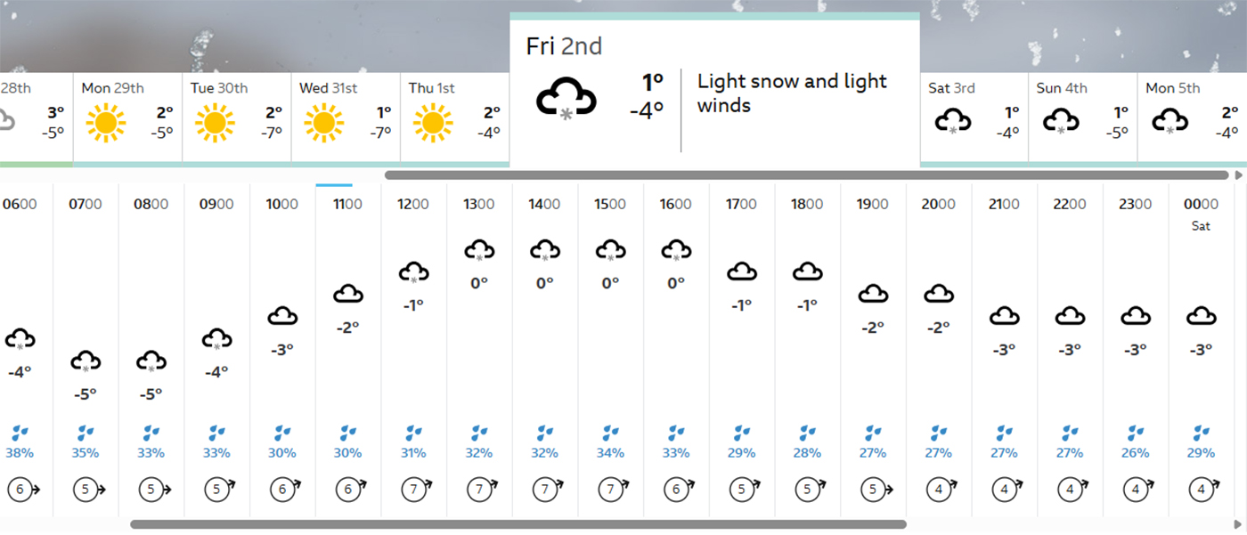 Însă iarna adevărată este anunțată de meteorologii BBC din data de 2 ianuarie 2026. De vineri, 2 ianuarie, ninsorea crește în abundență, iar temperaturile vor fi cuprinse între 1 și -4 grade C. Urmează apoi câteva zile în care ninsoarea va continua, așternându-se ceea ce în aceste zile este numită de specialiști „iarna secolului”, adică o iarnă mai rece decât în anii anteriori, cu episoade de ninsoare consistente și temperaturi sub mediile climatologice normale.