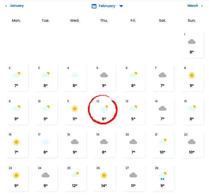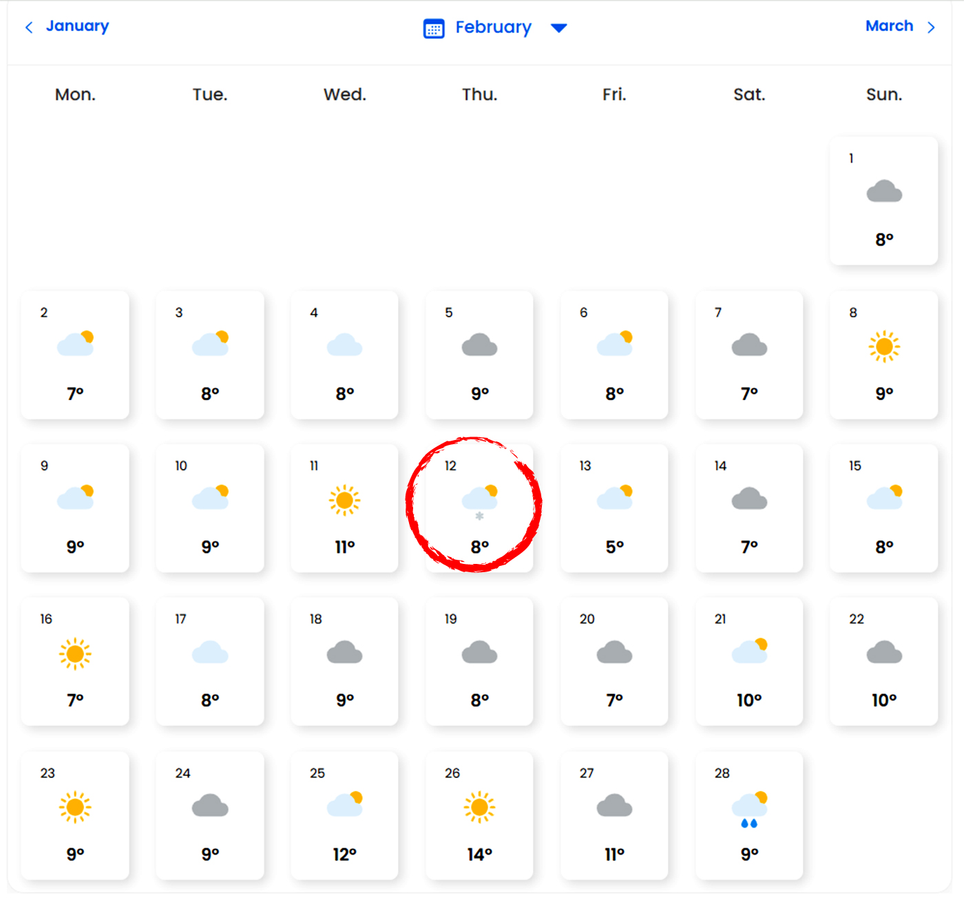 Luna februarie, ultima lună de iarnă, aduce doar o zi cu ninsoare, în Capitală, potrivit meteorologilor EaseWeather. Este vorba de ziua de 12 februarie. În rest, vor fi zile mohorâte, dar și zile în care se arată soarele. Totodată, în luna februarie este prognozată doar o zi de ploaie, la final, pe data de 28 a lunii.