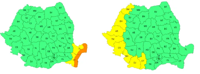 De asemenea, a fost emis și un Cod Portocaliu pentru intervalul 30 august, ora 10 – 31 august, ora 3 dimineața, fiind anunțate averse torențiale (25-30 litri/mp – 40-50 litri/mp), tot în zona litorală a județelor Constanța și Tulcea.