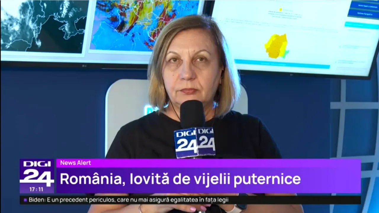 Toată țara, cu excepția zonei Dobrogei, se află sub incidența avertizării meteorologice de cod portocaliu și cod galben. Areale extinse din partea de sud, sud-vest, centru-nord a țării se află sub cod portocaliu pentru că până mâine dimineață, la ora 10:00 ne așteptăm ca fenomenele de instabilitate atmosferică să fie deosebit de accentuate, cu averse care să cumuleze pe secvențe scurte de timp cantități de 30-40l/m² izolat posibil peste 50l/m² așa cum am avut deja confirmarea în județul Suceava, aceasta însemnând o apropiere foarte mare de ceea ce ar însemna o cantitate la nivelul unei întregi luni iulie în țara noastră.