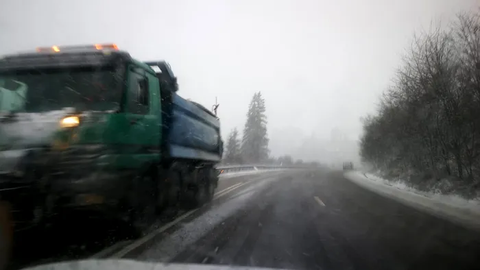 Și pe DN 17 A Trei Movile ninge, iar pe carosabil s-a depus zăpadă frământata de 0-2cm.