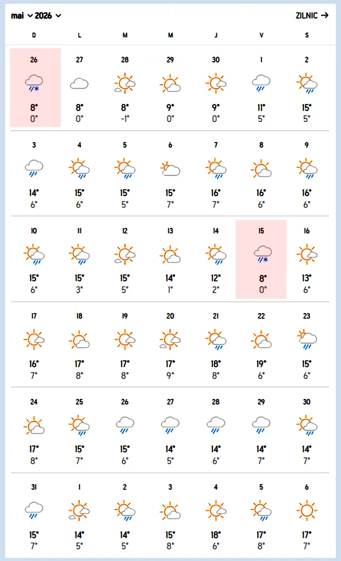 Fenomenul continuă și în luna mai. Deși temperaturile cresc treptat, apar în continuare zile cu precipitații mixte, inclusiv ninsoare, în special în prima jumătate a lunii.