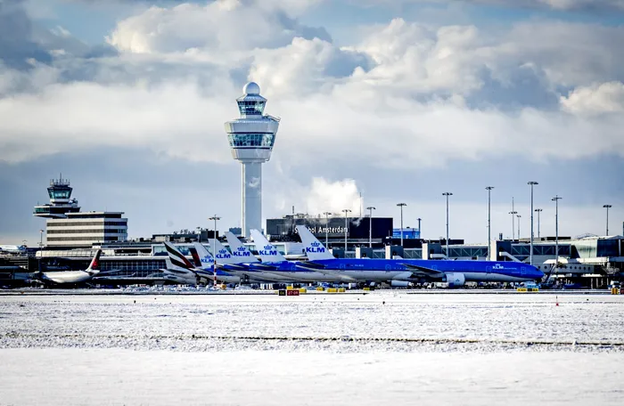 SCHIPHOL -Vliegtuigen op luchthaven Schiphol. Op het vliegveld zijn opnieuw honderden vluchten geannuleerd vanwege de sneeuwval. ROBIN UTRECHT / ANP
