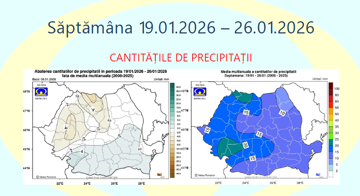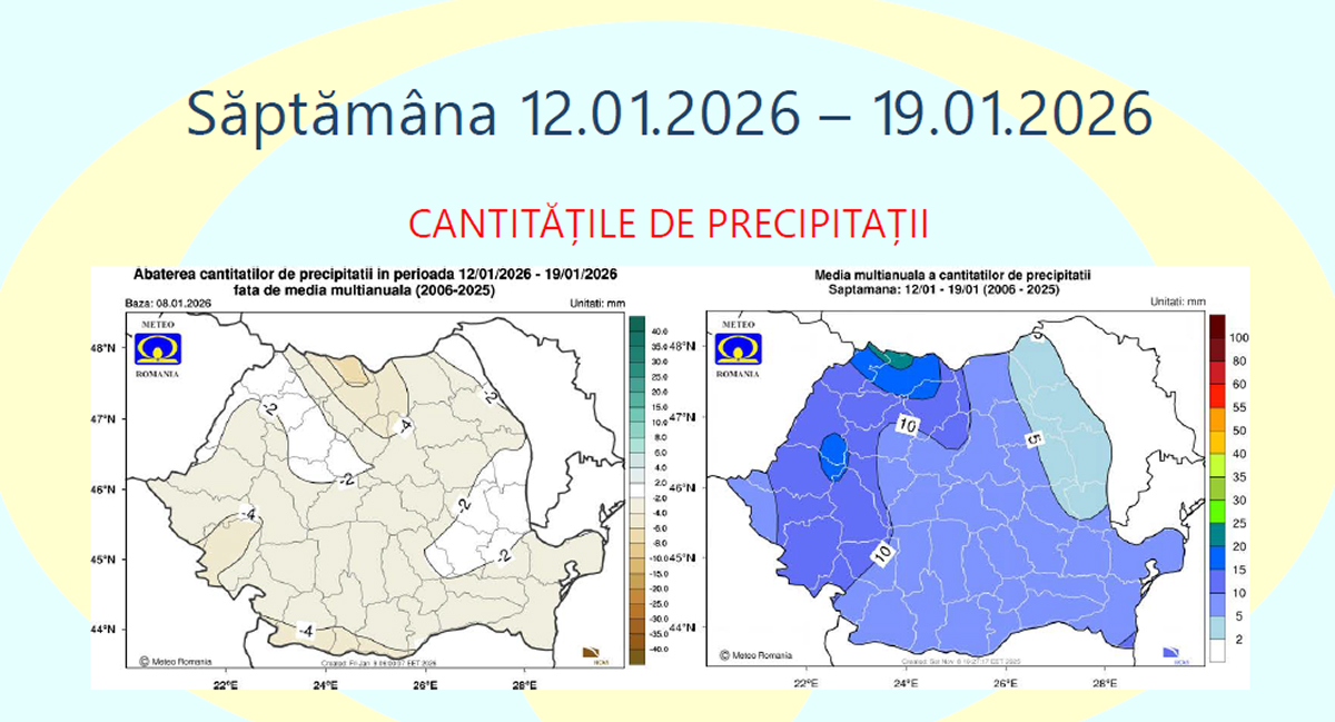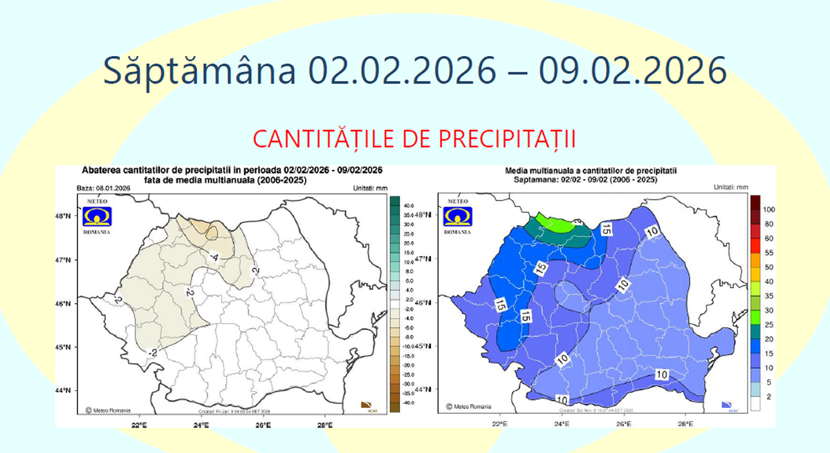 În ceea ce privește precipitațiile, cantitățile estimate vor fi, în general, apropiate de mediile climatologice specifice acestui interval, în toate regiunile.