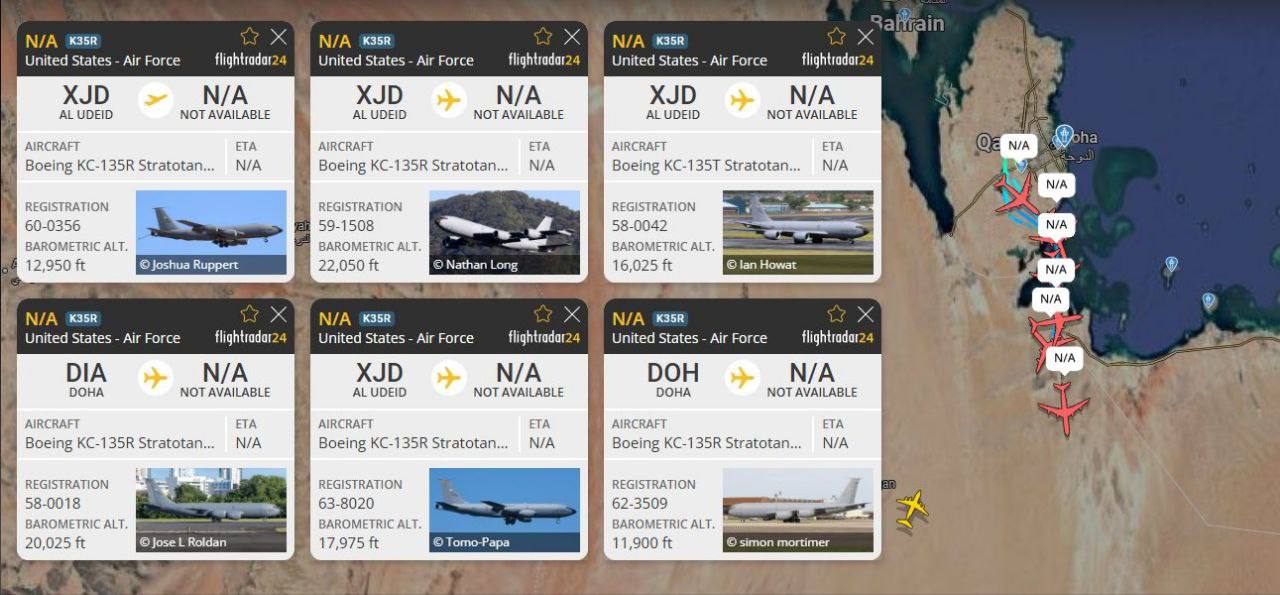 Șase aeronave cisterne de realimentare KC-135 au decolat de la baza al-Udeid din Qatar.